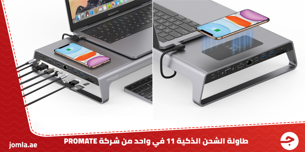 تستطيع تحويل مكتبك واللابتوب الخاص بك إلى محطة عمل متكاملة ومتعدة الإستخدامات من خلال طاولة الشحن الذكية 11 في واحد من شركة PROMATE والتي تأتي بتصميم رائع ومواد قوية وعالية الجودة لتوفر لك القدرة على شحن 11 جهاز مختلف في نفس الوقت ودون الحاجة إلى الحركة والتنقل من مكانك، ولنلقي نظرة سريعة على طاولة الشحن الذكية التي سوف تكون الحل الأنسب والمثالي لك.